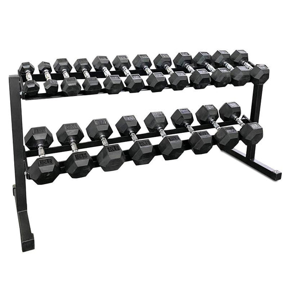 Choose rack to store 5 LB to 50 LB, 5 LB to 75 LB or 5 LB to 100 LB. Smaller options to fit limited space.